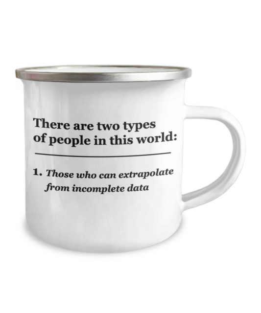 There are two types of People, Those who can extrapolate from incomplete data- 12 Oz Stainless Steel Enamel Finish White Camper Coffee Mug