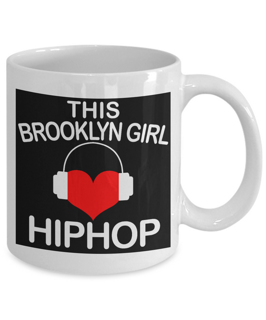Music Lover Gift Coffee Mug, This Brooklyn Girl Love Hip Hop-White Porcelain Coffee Mug 11 oz, For Sister,Girlfriend, Mother,Music Mug