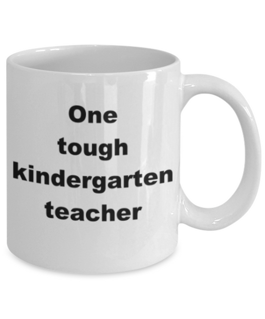 One tough kindergarten teacher - Funny White Porcelain Coffee Mug Cute Ceramic Cup 11 oz
