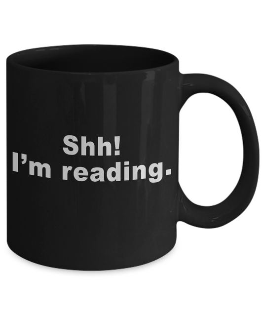 I'm Reading Coffee mug, Shh I'm Reading-Black Porcelain Coffee Mug 11 oz for Book, lover, reader, Bookworm
