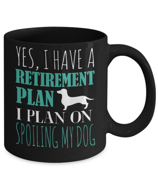 Dog lovers Mugs , Retirement plan spoiling on dog - Black Coffee Mug Porcelain Tea Cup 11 oz - Great Gift