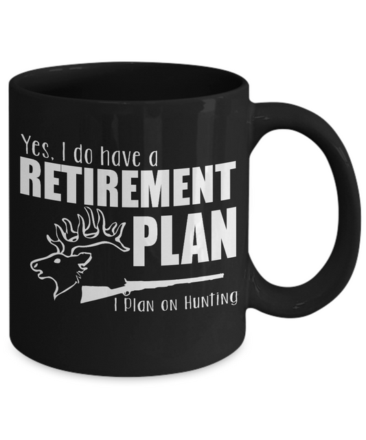 Hunter Coffee Mug, I Do Have A Retirement Plan, Hunting-Black Porcelain Coffee Mug 11 oz for hunter, dad, son,daughter,mom