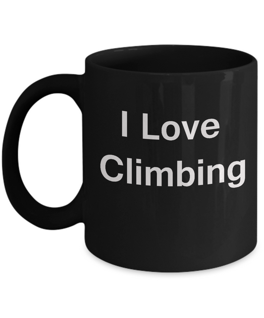 Mountain Climbing Lovers Gifts - I Love Climbing - Valentines Gifts - Porcelain Black Funny Coffee Mug, Best Office Tea Mug & Coffee Cup Gifts 11 oz