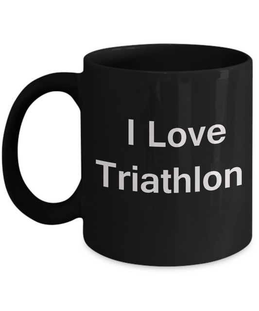 I Love Triathlon - Valentines Gifts - Porcelain Black Funny Black coffee mugs 11 oz