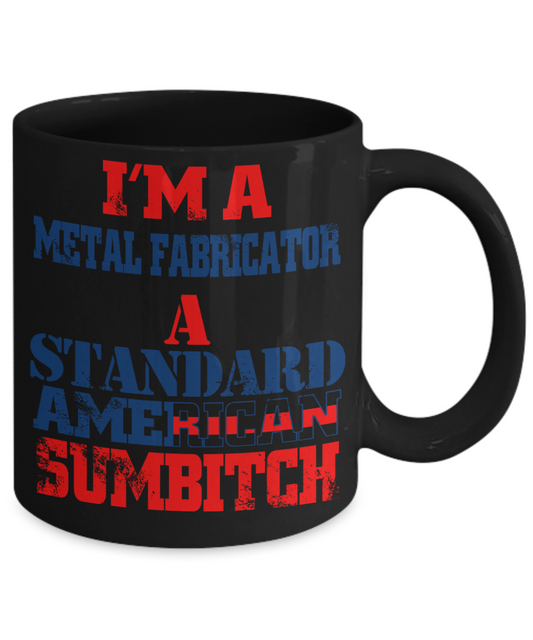 Funny Fabricator Coffee Mug, I'M A Metal Fabricator A Standard American Sumbitch-Black Porcelain Coffee Mug 11 oz