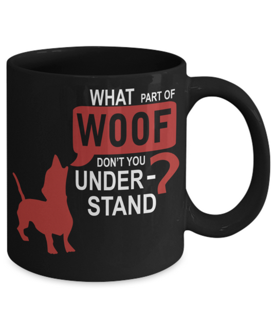 Animals and Pets Lovers Gifts , Woof Don't Understand - Black Coffee Mug Porcelain Tea Cup 11 oz - Great Gift