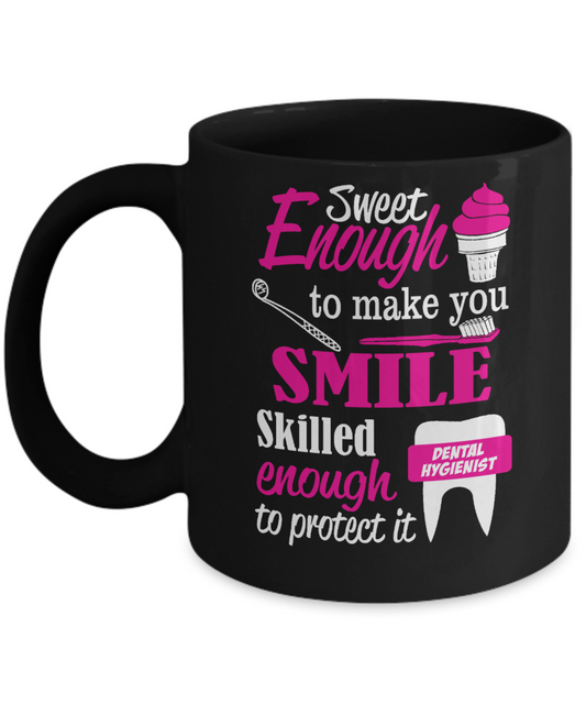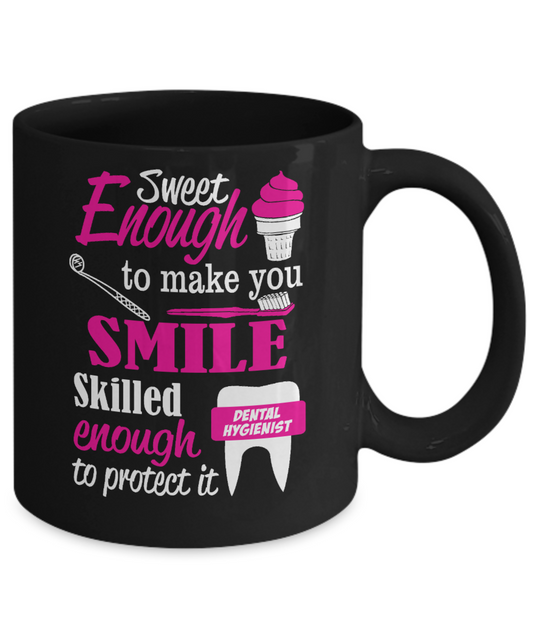 Dentist Gift Coffee Mug, Sweet Enough To Make You Smile Skilled Enough To Protect It -Black Porcelain Coffee Mug 11 oz For Dentist, Doctor, Dental Student, Medical, Graduate