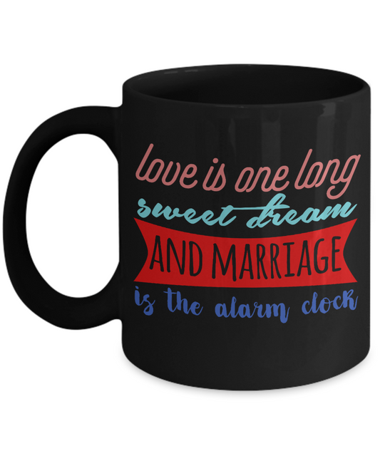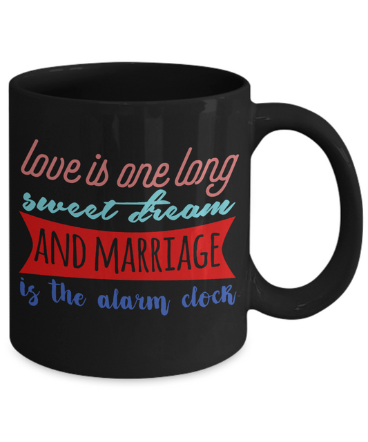 Love Is One Long Sweet Dream And Marriage Is The Alarm Clock-Black Porcelain Coffee Mug 11 Oz Funny Quotes Coffee Mug