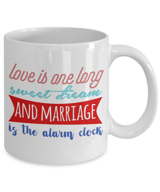 Love Is One Long Sweet Dream And Marriage Is The Alarm Clock- White Porcelain Coffee Mug 11 Oz Funny Quotes Coffee Mug