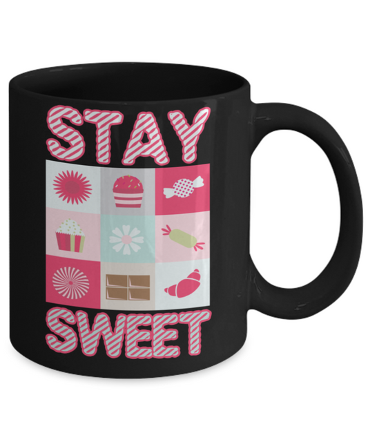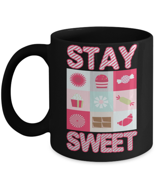 Sweets lovers mugs, Stay sweet - Funny Black Porcelain Coffee 11 oz