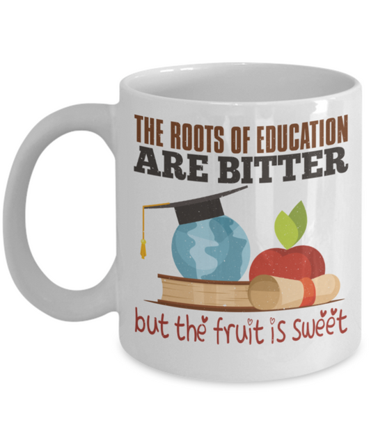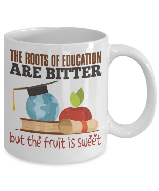 The roots of education are bitter but the fruit is sweet - Funny White Porcelain Coffee 11 oz