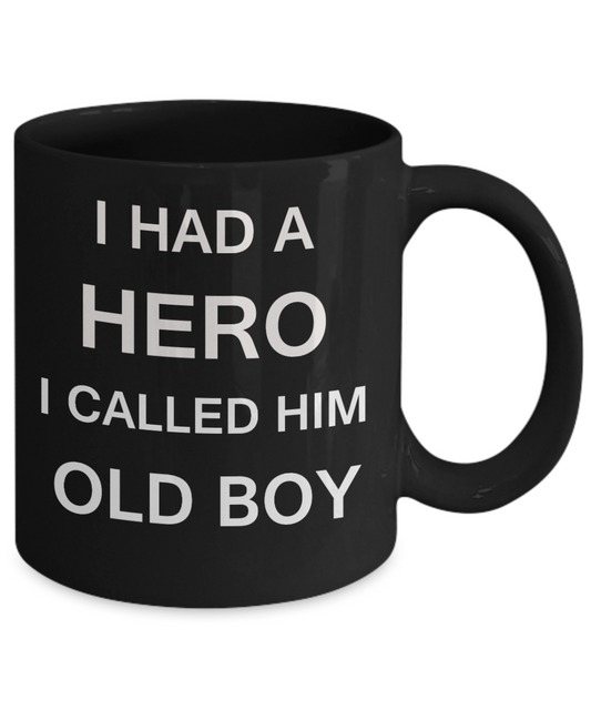 Sympathy gifts for loss of father - I Had a Hero I called him Old Boy - Black Porcelain Coffee Cup,Premium 11 oz Funny Mugs Black coffee cup Gifts Idea