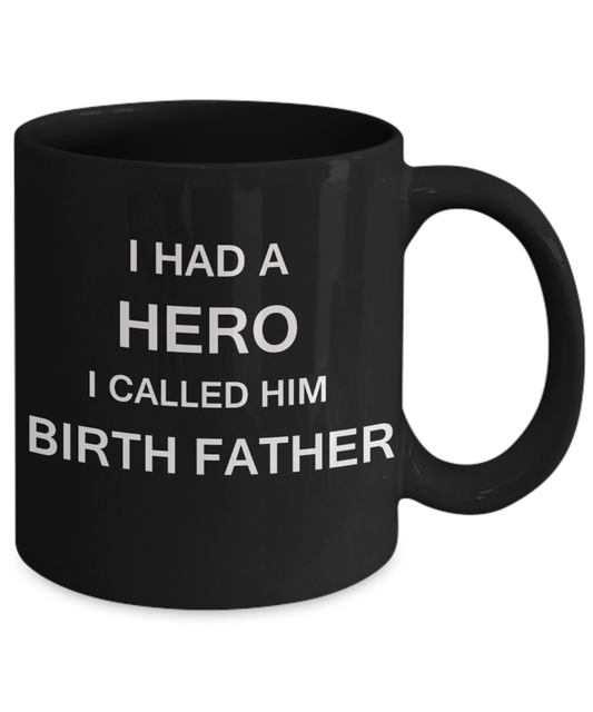 Sympathy gifts for loss of father - I Had a Hero I called him Birth Father - Black Porcelain Coffee Cup,Premium 11 oz Funny Mugs Black coffee cup Gifts Idea
