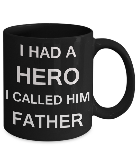 Sympathy gifts for loss of father - I Had a Hero I called him Father - Black Porcelain Coffee Cup,Premium 11 oz Funny Mugs Black coffee cup Gifts Idea