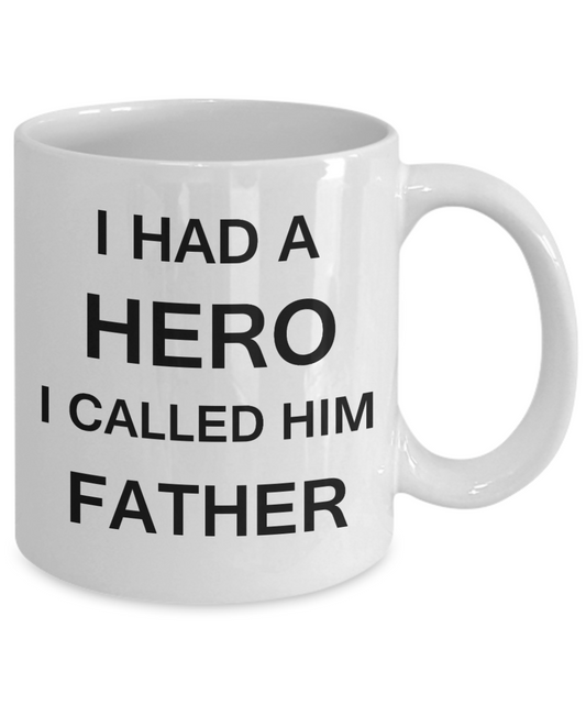 Sympathy gifts for loss of father - I Had a Hero I called him Father - White Porcelain Coffee Cup,Premium 11 oz Funny Mugs White coffee cup Gifts Ideas