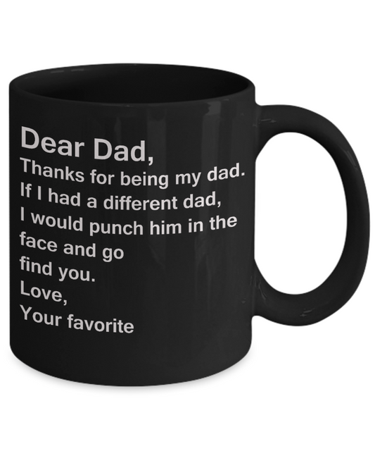 Sympathy gifts for loss of father - Dear Dad Thanks for Being My Dad - Black Porcelain Coffee Cup,Premium 11 oz Funny Mugs Black coffee cup Gifts Idea