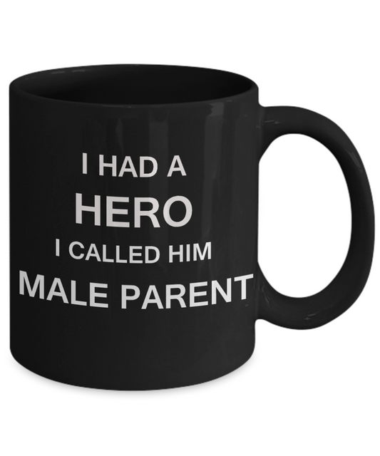 Sympathy gifts for loss of father - I Had a Hero I called him Male Parent - Black Porcelain Coffee Cup,Premium 11 oz Funny Mugs Black coffee cup Gifts Idea