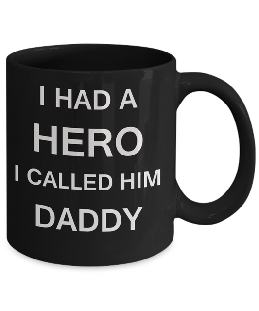 Sympathy gifts for loss of father - I Had a Hero I called him Daddy - Black Porcelain Coffee Cup,Premium 11 oz Funny Mugs Black coffee cup Gifts Idea
