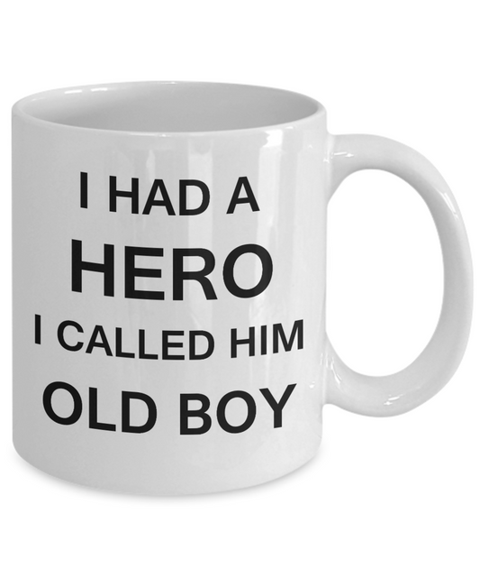 Sympathy gifts for loss of father - I Had a Hero I called him Old Boy - White Porcelain Coffee Cup,Premium 11 oz Funny Mugs White coffee cup Gifts Ideas