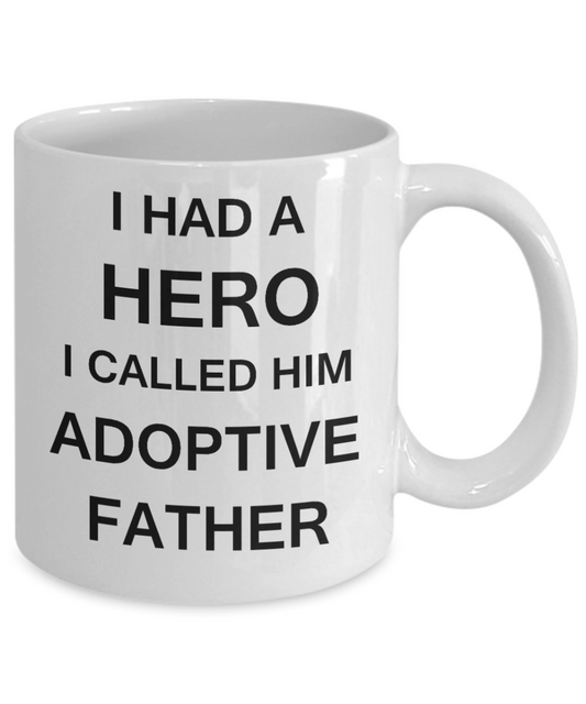 Sympathy gifts for loss of father - I Had a Hero I called him Adoptive Father - White Porcelain Coffee Cup,Premium 11 oz Funny Mugs White coffee cup Gifts Ideas