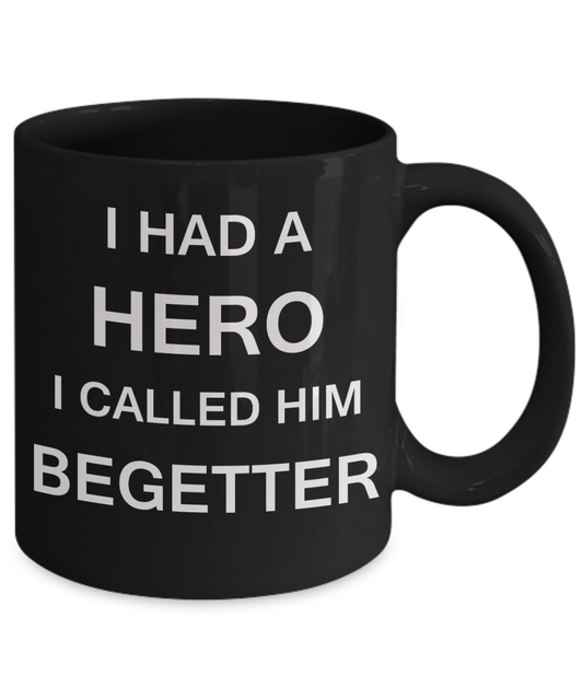 Sympathy gifts for loss of father - I Had a Hero I called him Begetter - Black Porcelain Coffee Cup,Premium 11 oz Funny Mugs Black coffee cup Gifts Idea