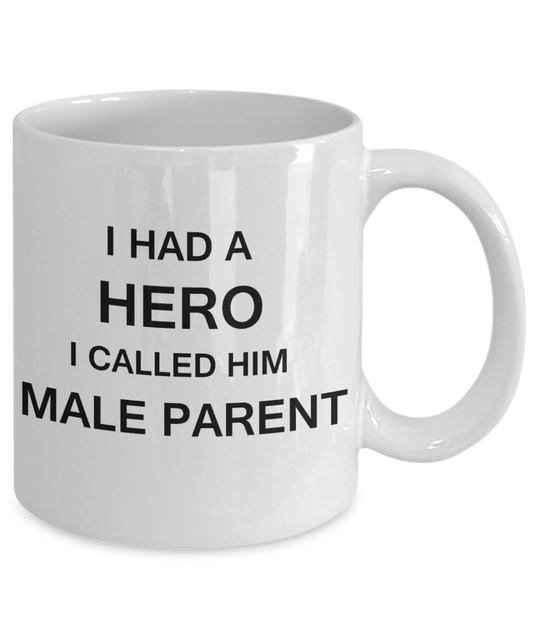 Sympathy gifts for loss of father - I Had a Hero I called him Male Parent - White Porcelain Coffee Cup,Premium 11 oz Funny Mugs White coffee cup Gifts Ideas