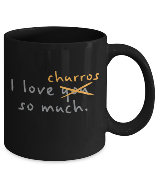 Beer Food Lovers mugs , I Love Churros so much - Black Coffee Mug Porcelain Tea Cup 11 oz - Great Gift