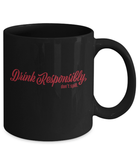 Beer Food Lovers mugs , Drink Responsibly Don't Spill - Black Coffee Mug Porcelain Tea Cup 11 oz - Great Gift