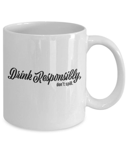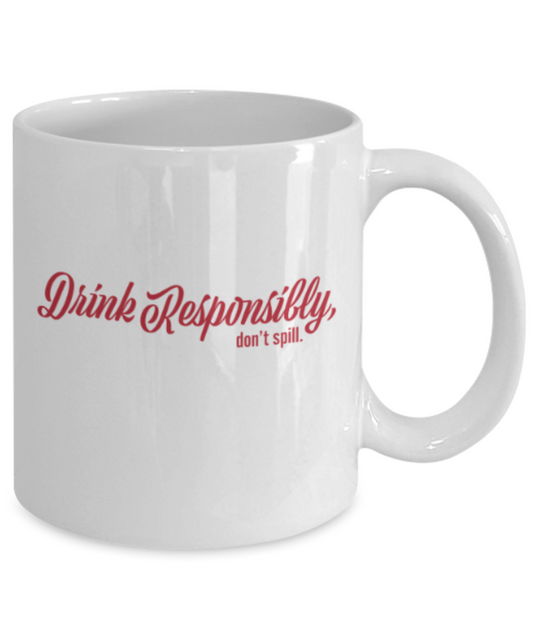Beer Food Lovers mugs , Drink Responsibly Don't Spill - White Coffee Mug Porcelain Tea Cup 11 oz - Great Gift