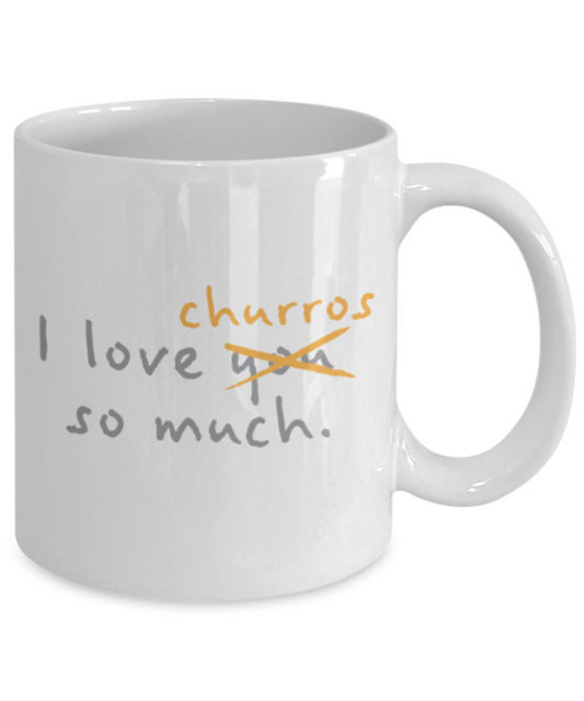 Beer Food Lovers mugs , I Love Churros so much - White Coffee Mug Porcelain Tea Cup 11 oz - Great Gift