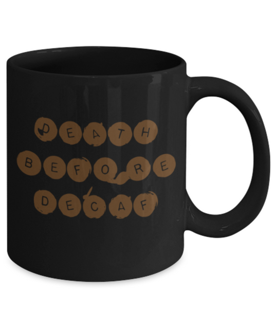 Beer Food Lovers mugs , Death Before Decaf - Black Coffee Mug Porcelain Tea Cup 11 oz - Great Gift