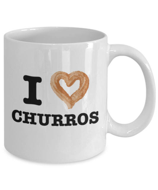 Beer Food Lovers mugs , I Love Churros - White Coffee Mug Porcelain Tea Cup 11 oz - Great Gift