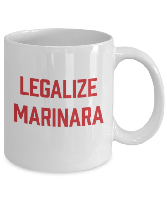 Beer Food Lovers mugs , Legalize Marinara - White Coffee Mug Porcelain Tea Cup 11 oz - Great Gift