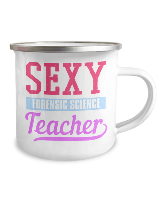 Forensic Science Teacher Gift Coffee Mug, Sexy Forensic Science Teacher - 12 Oz Stainless Steel Enamel Finish White Camper Coffee Mug