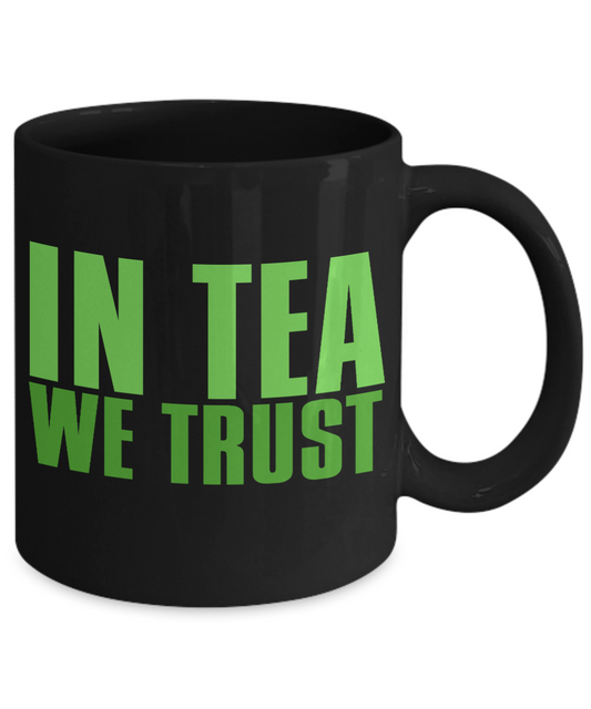 In Tea We Trust Coffee, Tea Mug, Tea Cup, Tea Lover, Tea addict Mug- Black Porcelain Coffee Mug 11 Oz Funny Quotes Coffee Mug