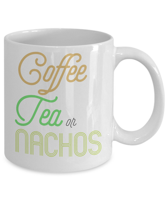 Coffee Tea Or Nachos, Coffee Lover Mug, Tea Lover Mug - White Porcelain Coffee Mug 11 Oz Funny Quotes Coffee Mug