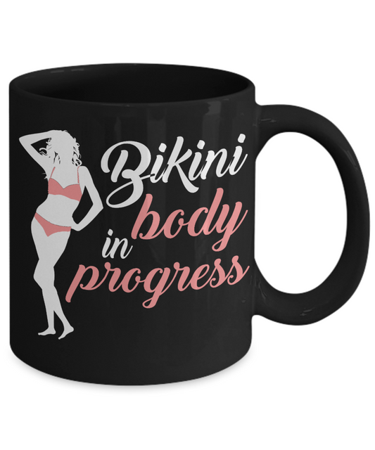 Bikini Girl Coffee Mug, Bikini Body In Progress-Black Porcelain Coffee Mug 11 oz For Daughter,Teen,Women, Girlfriend