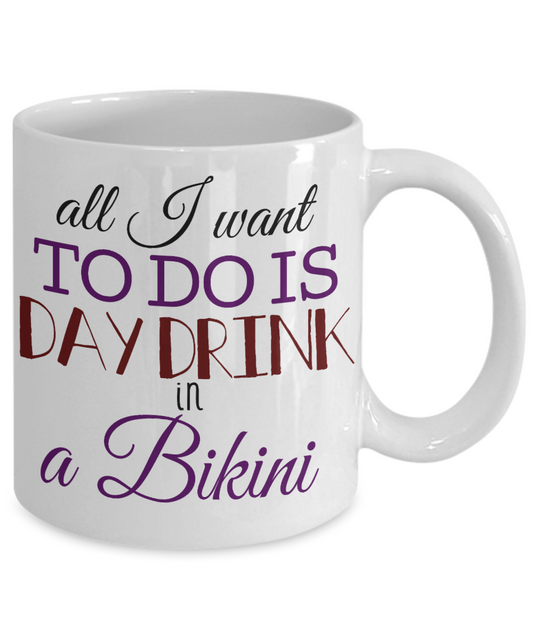 Bikini Girl Coffee Mug, All I Want To Do Is Day Drink In A Bikini-White Porcelain Coffee Mug 11 oz For Daughter,Teen,Women, Girlfriend