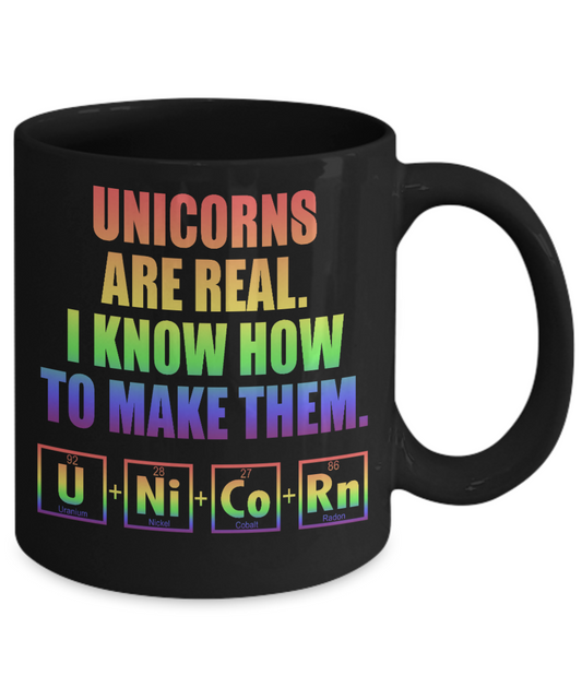 Cute Unicorn Coffee Mug, Unicorns are Real I Know How To Make them-Black Porcelain Coffee Mug 11 oz For Daughter,Teen,Women, Grandma