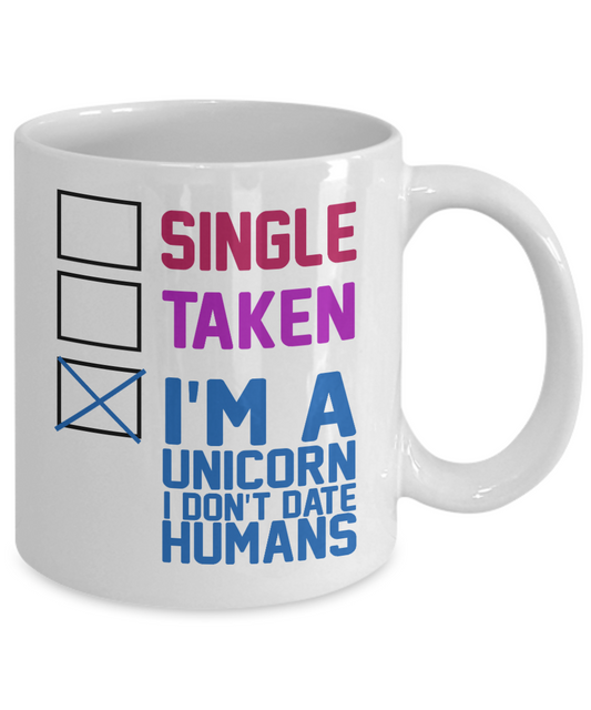 Cute Unicorn Coffee Mug,I'm A Unicorn I Don't Date Humans-White Porcelain Coffee Mug 11 oz For Daughter,Teen,Women