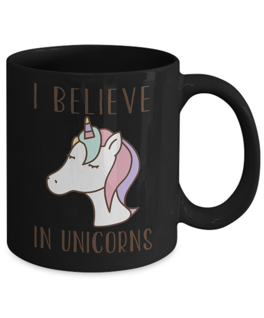 Cute Unicorn Coffee Mug, I Believe In Unicorns-Black Porcelain Coffee Mug 11 oz For Daughter,Teen,Women, Grandma