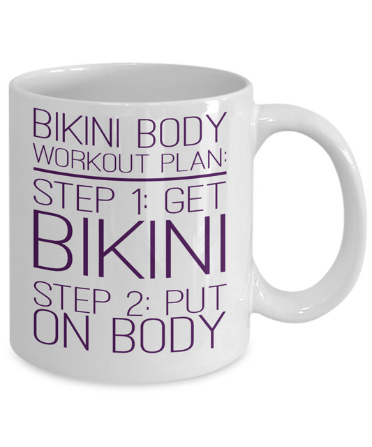 Bikini Girl Coffee Mug,Bikini Body Workout Plan, Get Bikini put On Body-White Porcelain Coffee Mug 11 oz For Daughter,Teen,Women, Girlfriend