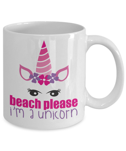 Magical Unicorn Coffee Mug,Beach Please I Am A Unicorn-White Porcelain Coffee Mug 11 oz For Daughter,Teen,Women,Grandma