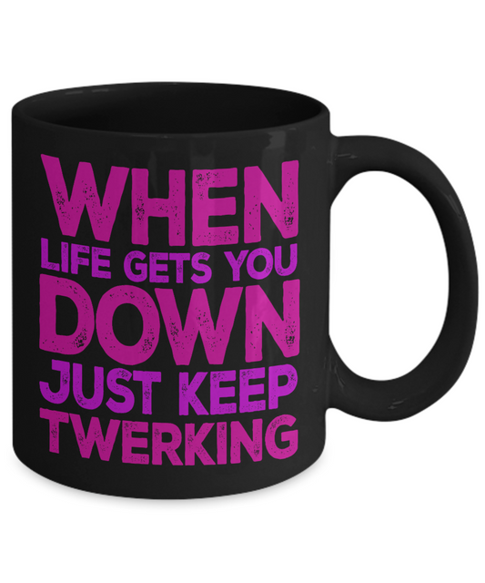 Super Dancer Coffee Mug, When Life Gets You Down Just Keep Twerking-Black Porcelain Coffee Mug 11 oz For Daughter,Teen,Women, Girlfriend