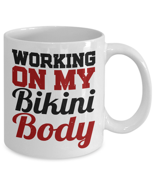 Bikini Girl Coffee Mug, Working On My Bikini Body-White Porcelain Coffee Mug 11 oz For Daughter,Teen,Women, Girlfriend