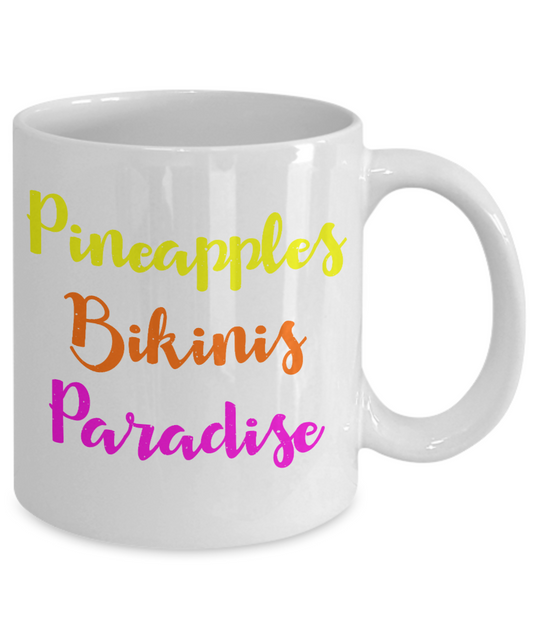 Bikini Girl Coffee Mug,Pineapples Bikinis Paradise-White Porcelain Coffee Mug 11 oz For Daughter,Teen,Women, Girlfriend