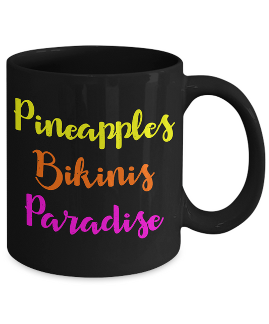 Bikini Girl Coffee Mug,Pineapples Bikinis Paradise-Black Porcelain Coffee Mug 11 oz For Daughter,Teen,Women, Girlfriend
