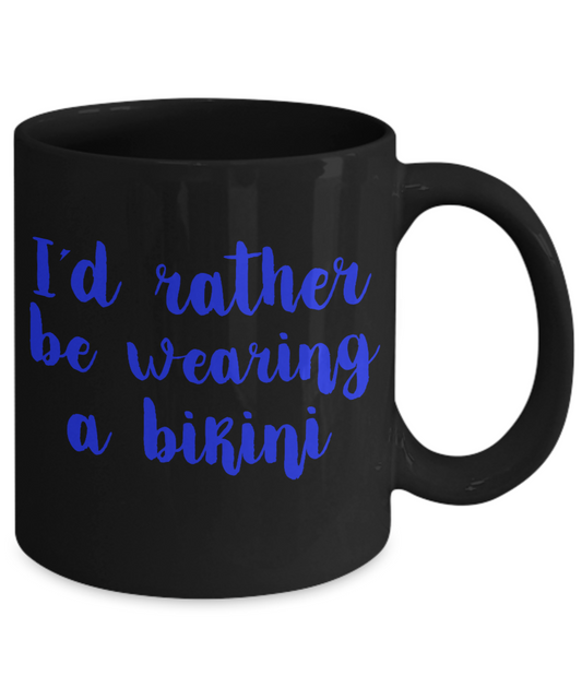 Bikini Girl Coffee Mug, I'd Rather Be Wearing A Bikini-Black Porcelain Coffee Mug 11 oz For Daughter,Teen,Women, Girlfriend