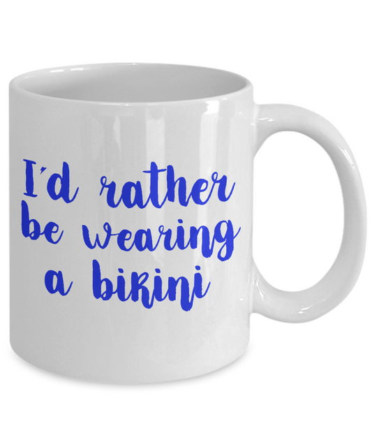 Bikini Girl Coffee Mug, I'd Rather Be Wearing A Bikini-White Porcelain Coffee Mug 11 oz For Daughter,Teen,Women, Girlfriend