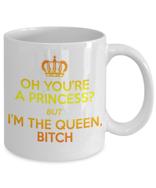 Cute Princess Coffee Mug, Oh You're A Princess But I'm The Queen Bitch-White Porcelain Coffee Mug 11 oz For Daughter,Teen,Women, Girlfriend